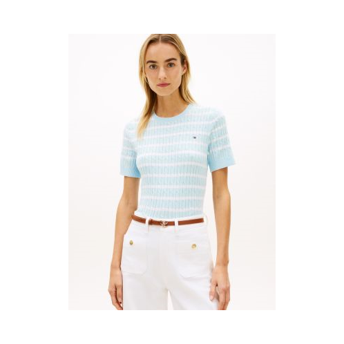 Tommy Hilfiger women's sweater. Made from premium cotton in a flattering, easy fit, our lightweight, short-sleeve cable knit sweater is a soft, comfortable layer.