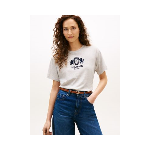 Tommy Hilfiger women's T-shirt. This tee is cut in an easy fit and designed with a preppy Hilfiger crest logo. Made from pure cotton jersey, it's a soft, comfortable layer.