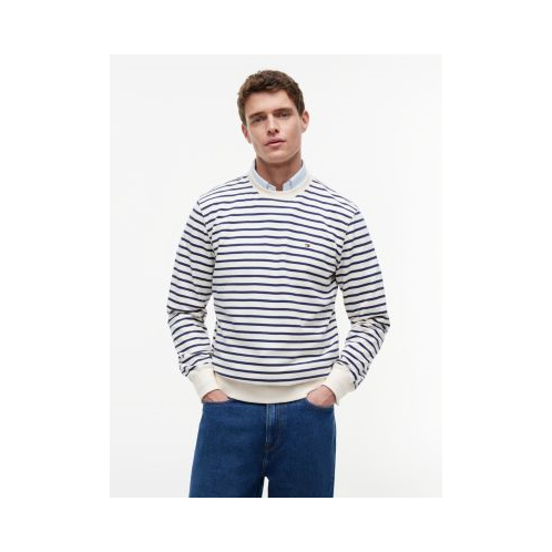 Tommy Hilfiger men's sweatshirt. Made from medium-weight terry cotton, our striped sweatshirt is the perfect layering option for transitional weather.