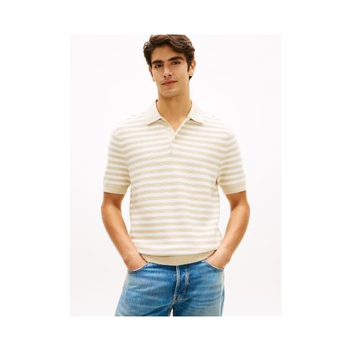 [US] TOMMY HILFIGER Short-Sleeve Stripe Waffled Sweater Polo