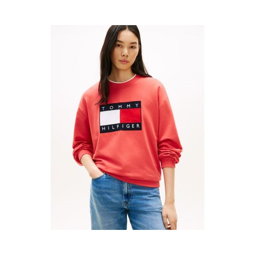 Tommy Hilfiger women's sweatshirt. This relaxed sweatshirt is made from a fine baby terry weave with a garment-washed finish for a smooth feel and exceptional softness. Our standout flag logo adds Tommy spirit to this classic crewneck pullover.