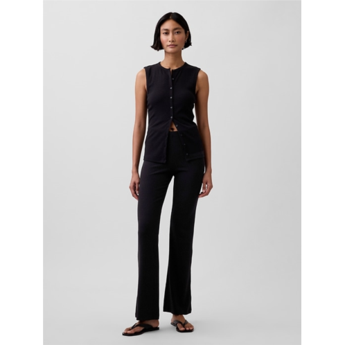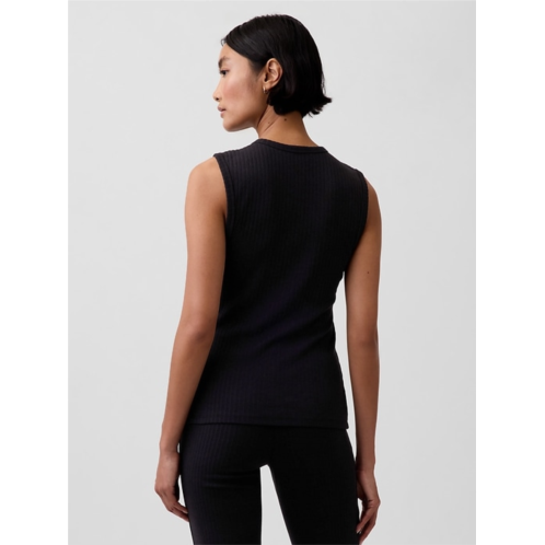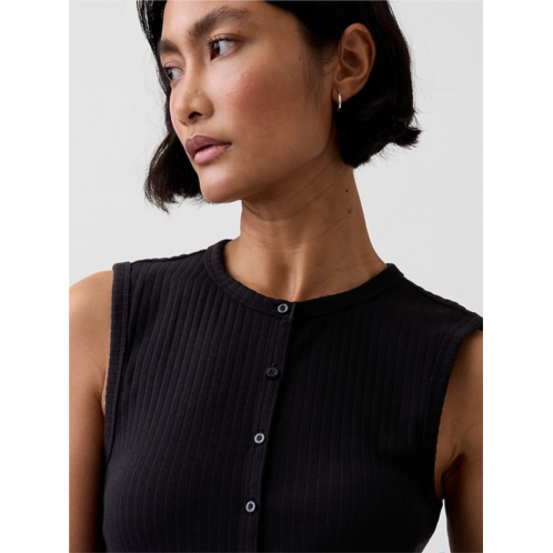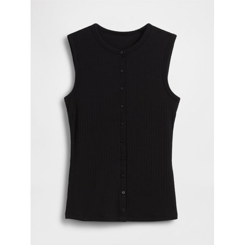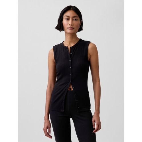 - Soft, stretch cotton-modal blend ribbed button-up tank top.