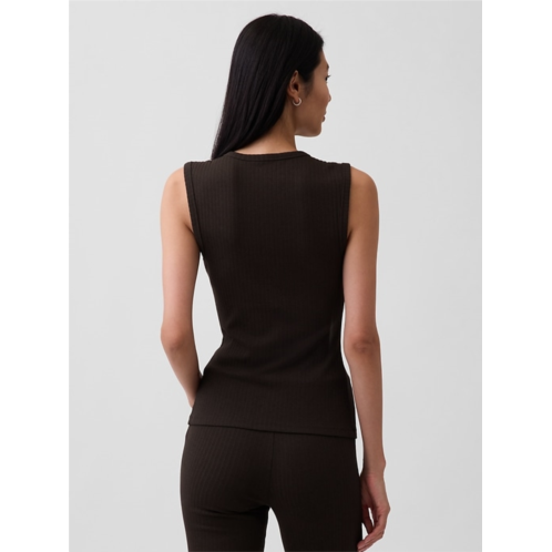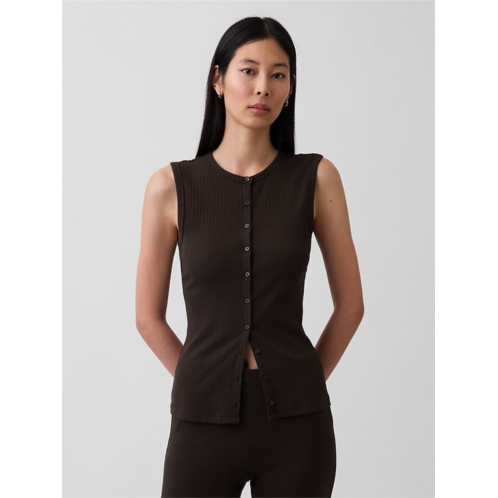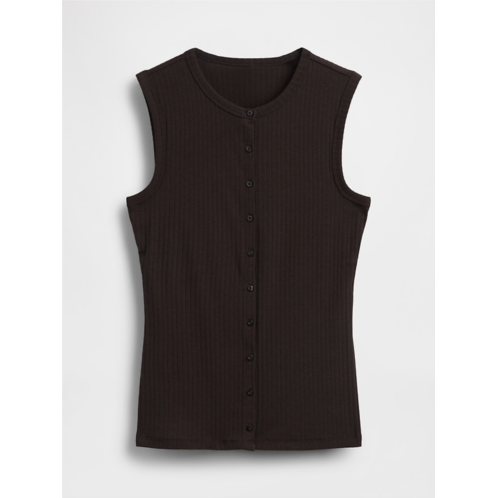 - Soft, stretch cotton-modal blend ribbed button-up tank top.