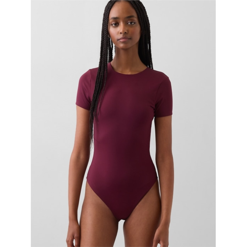 - Soft, ultra-stretchy nylon-blend T-shirt bodysuit.