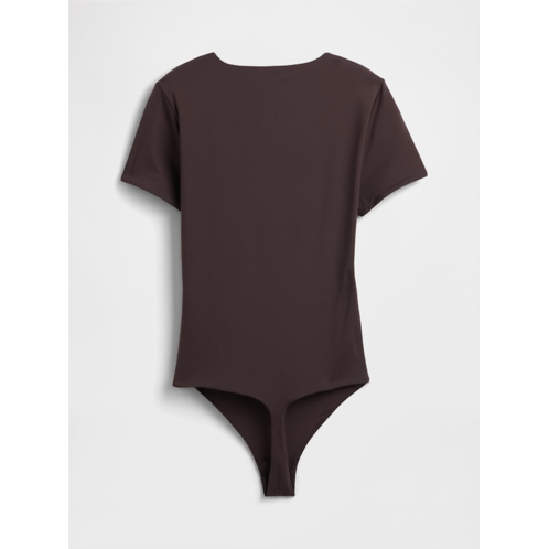 - Soft, ultra-stretchy nylon-blend T-shirt bodysuit.