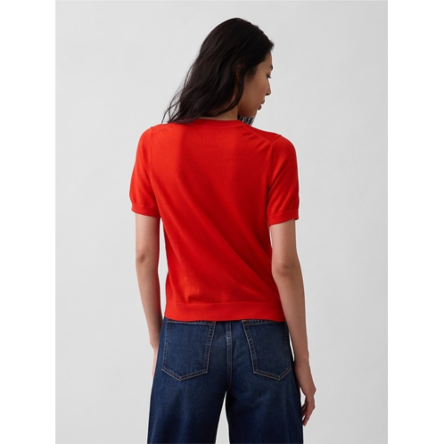 - Soft Merino wool sweater top in a slightly cropped length.
