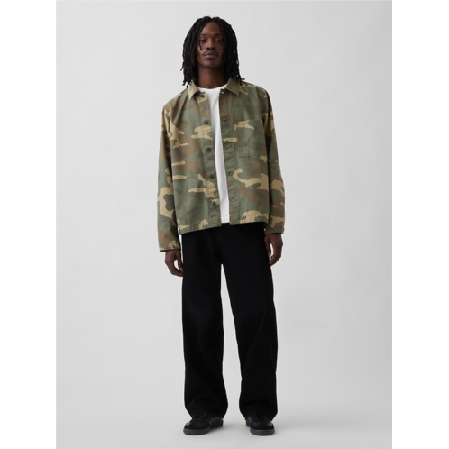 - Authentic non-stretch canvas denim utility shirt. In a relaxed fit.