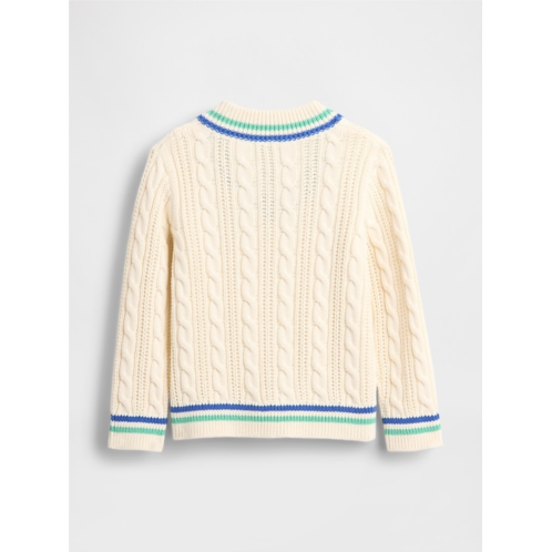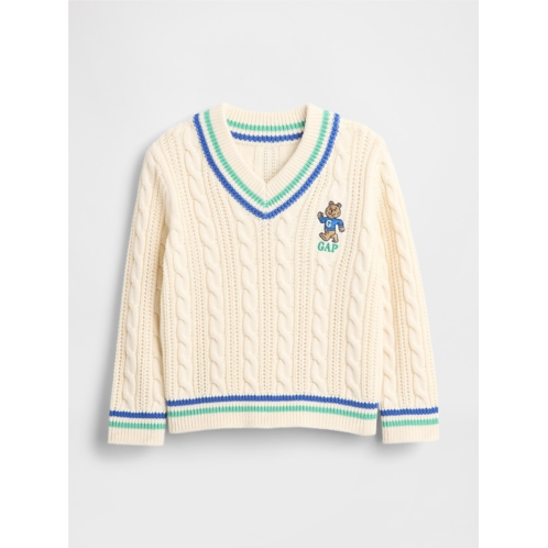 [US] Gap Toddler Bear Logo Varsity V-Neck Cable Knit Sweater