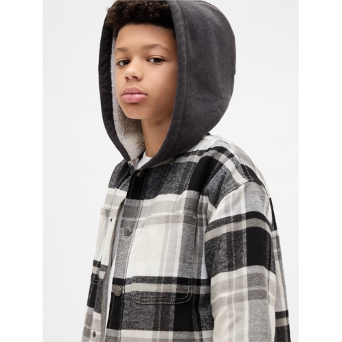 [US] Gap Kids Sherpa-Lined Hooded Flannel Shirt Jacket