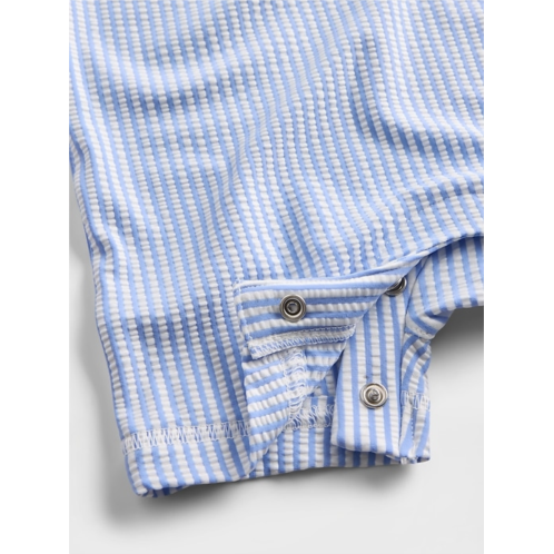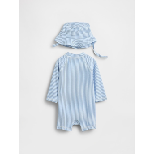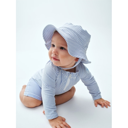 - Soft stretch swim knit rash guard and bucket hat outfit set.