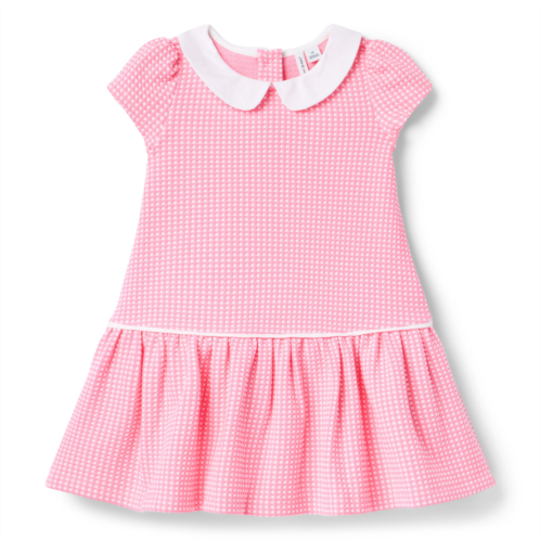 Style is squared away in our textured dropwaist dress. Designed with a Peter Pan collar, cap sleeves and piped trim.