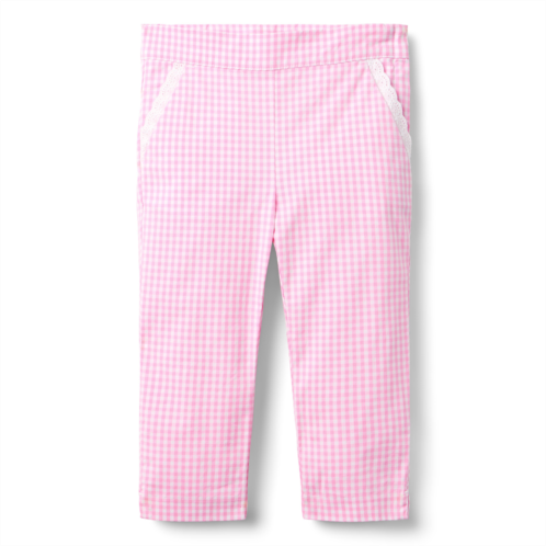 Our pant in crisp cotton canvas pairs perfectly with all their favorites. Designed in allover gingham with a stylish cropped silhouette and eyelet trimmed pockets.