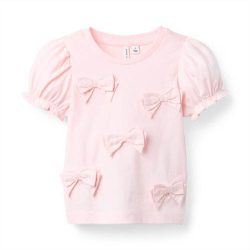 - It's always a stylish bow-ment in our soft, pure cotton top. Featuring allover bow appliques, puff sleeves and ruffle cuffs.