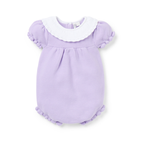 - A close-knit favorite for baby, designed in soft, pure cotton. Our romper is finished with a contrast crochet collar and little ruffle cuffs.