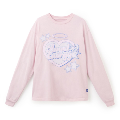 Infused with ''Angel Energy,'' this long sleeve t-shirt by Spirit Jersey features Experiment 624 and her big heart on the front. Perfect with cute jeans or a skirt, this top has puffy ink and a retro vibe while your favorite pink alien fromLilo & Stitch: The Seriesis also shown in all her charm on the back.