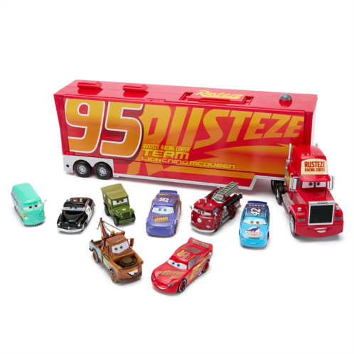 Imaginations rev into high gear with thisCarsplayset. Mack, the Rust-eze race team's carrier, hauls eight pullback die cast cars that roll out for endless fun, including Lightning McQueen, Mater and more. Mack features lights and sound functions and, after the races are won, the cars go back in their trusty carrier and the side panel goes up until it's time for the next adventure.