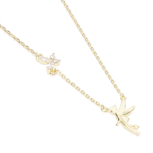 Think happy thoughts... like the idea of wearing this delicate, dazzling Tinker Bell necklace. An adjustable gold-tone chain holds a shimmering fairy wing fixed pendant accented with clear cubic zirconia, for subtle shimmer. Further along the chain, a fixed pendant of our favorite fairy is suspended mid-flight, looking sweetly over her shoulder.