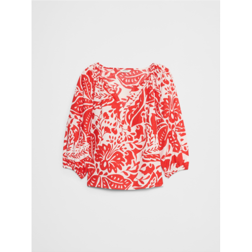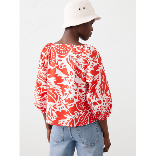 Lantern-Sleeve Poplin Top