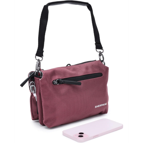 - Explore more and worry less by carrying Sherpani Mei Anti-theft Crossbody is your go-to companion for stylish, stress-free exploring. Crafted from durable yet lightweight nylon, this sleek silhouette is designed to move effortlessly with you, whether you're navigating airports, strolling new streets, or tackling everyday errands. Inside, thoughtful organization keeps everything exactly where you need it, including a dedicated passport pocket for easy access and added security while traveling. Two internal dividers streamline your essentials, while a front zippered pocket with an interior key leash keeps must-haves close at hand. On the outside, Sherpani's trusted anti-theft technology works overtime: a slash-proof bottom and strap, RFID-blocking protection, Hypalon loop zipper locks, and a chair loop lock help safeguard your belongings wherever your journey takes you. Designed as a versatile two-in-one, it easily converts from shoulder bag to crossbody with an adjustable, detachable strap.