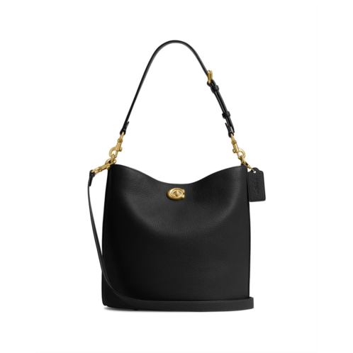 - Highlight your elegance with confidence carrying the COACH Willow Soft Bucket Bag. Crafted from leather, this bag features turn lock and snap closure, center zippered compartment, detachable, adjustable handle, and one interior snap pocket.