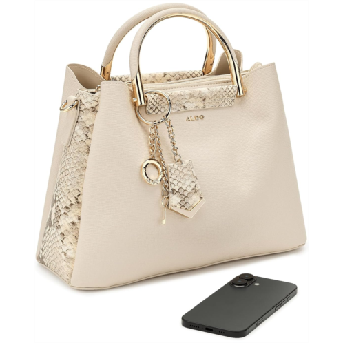 - The ALDO Cloenaa handbag is a study in refined craftsmanship. Thoughtfully structured and impeccably finished, it offers a polished statement without excess. Crafted from polyurethane, this bag features two carry handles, detachable, adjustable crossbody strap, zippered closure, three interior compartments, one interior zippered pocket, two compartments with magnetic closure, and brand logo hardware on the front.