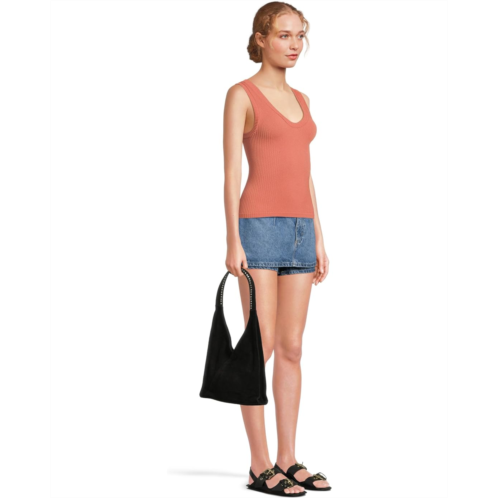 - With a little bit of everything you love - soft suede, subtle studs, and a sleek shape-this bag is sure to be in your daily rotation. This is sure to be the next 'it' bag. Featuring a shoulder style, suede fabrication, elongated strap pointed opening, magnetic snap closure, exterior pocket, stud details, and interior zipper pocket.