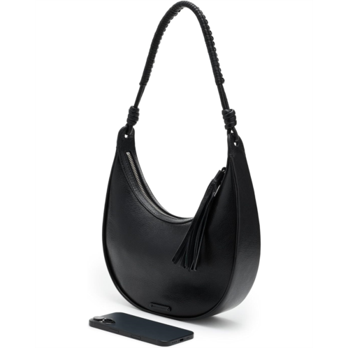 - The Rebecca Minkoff Saige Shoulder Bag brings a refined edge to the everyday hobo silhouette. Designed with a softly rounded body and finished with knotted strap details, it hangs comfortably over the shoulder while making a statement with its minimal yet distinctive look. A tassel accent adds subtle movement, balancing its streamlined shape with a touch of playful texture.