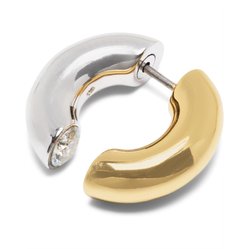 - Designed with interlocking links, Kate Spade New York Interlock Huggies make a bold, metallic statement with a brass construction complimenting a contrasting enamel. The interlock earrings feature a modern cubic zirconia for a polished appeal.