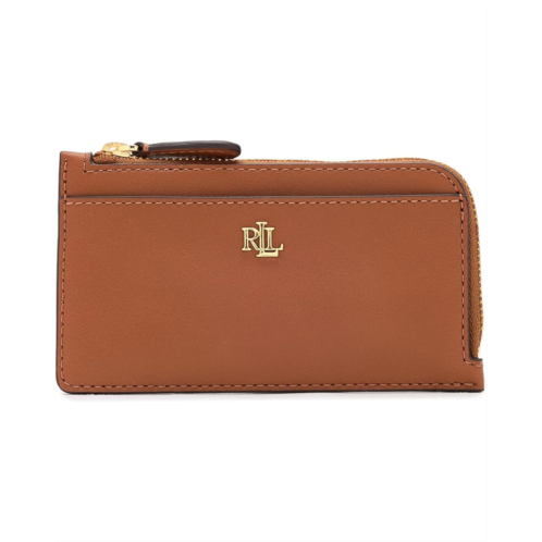 - Keep your cards safe and sorted in the Lauren Ralph Lauren Leather L-zip Card Case. The card case comes with a L-zipper closure with five internal card slots and a slip pocket at the exterior. Brass-finished 'LRL' logo at the front adds an authentic touch, while the attached leather strap with a metal dog clip allows easy carrying.