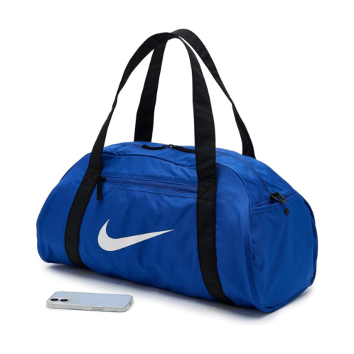- The Nike Gym Club Bag is a lightweight bag designed with an adjustable shoulder strap and dual handles that give you comfortable carrying options. Its dual zippers give you easy access to the main compartment. Made from polyester, this lightweight gym bag features a framed backpack and can be easily cleaned by wiping with a damp cloth. The two interior slip pockets, two side pockets, and a zippered exterior front pocket offer enough space to keep your essentials.