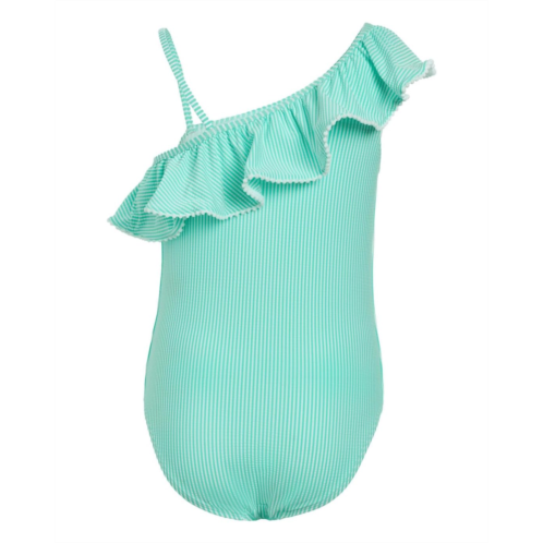 - Give your kiddo's look a flamboyant flair with the Janie and Jack Seersucker Onepiece Swimsuit. It is designed with an asymmetrical neckline, featuring ruffled trims and dainty shoulder strap.