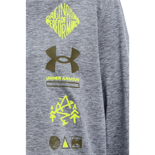 - The Under Armour Kids Twist Vert Hoodie is a sporty pullover made from lightweight performance fabric. It features a bold vertical Under Armour logo graphic, a hooded neckline, and a front kangaroo pocket for everyday comfort.