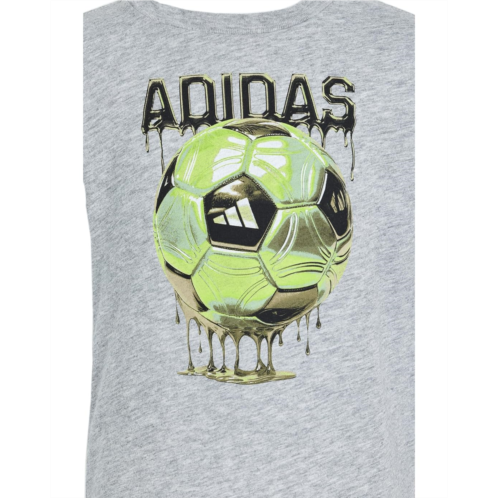 - Get ready for playtime wins wearing the adidas Kids Heather Colorblock Shorts Set, a dynamic two-piece designed to keep young athletes moving in confidence. The crew-neck tee features short sleeves, a regular fit, and a bold soccer ball graphic with a cool chrome drip effect that brings serious energy to everyday looks. Lightweight and comfortable, it's made for nonstop action, from recess to practice. The matching shorts are equally play-ready with a flat front, mid-rise silhouette, and an easy pull-on design. An elastic waistband ensures a secure yet flexible fit, while sporty stripe details add that classic athletic edge.