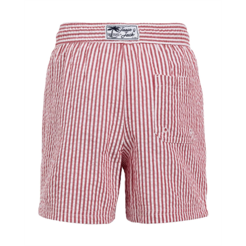 - The Janie and Jack Seersucker Patch Swim Trunk is designed in lightweight seersucker fabric, featuring stripe print allover and an elasticized waistband with drawstring for a secure fit.