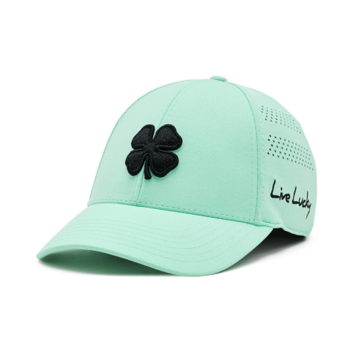 - Amp up your sporty style game wearing the Black Clover Lucky Heather Laser 4 Hat. This pull-on style baseball cap blends enhanced performance with the iconic clover style, taking it beyond just being a hat. It features a six-panel design, perforations on the back panels for breathability, a curved brim, and a 3D clover motif at the front. The memory fit headband provides ultimate comfort and style.