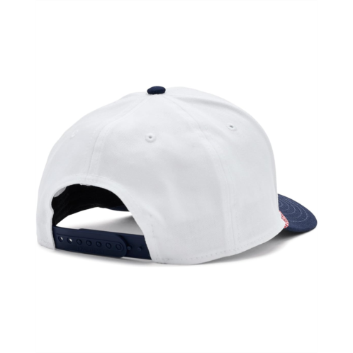 - Curved brim.