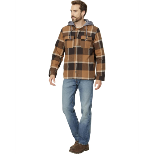 [US] Mens Levis Washed Cotton Shirt Jacket with A Jersey Hood and Sherpa Lining