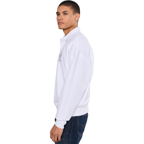 - Experience superior comfort and warmth wearing the Polo Ralph Lauren Relaxed Fit Fleece Graphic Sweatshirt. Made from fleece, it is styled with long sleeves, a collared neckline, a two-button front placket, and a straight hem. The ribbed cuffs and hem ensure a snug fit.