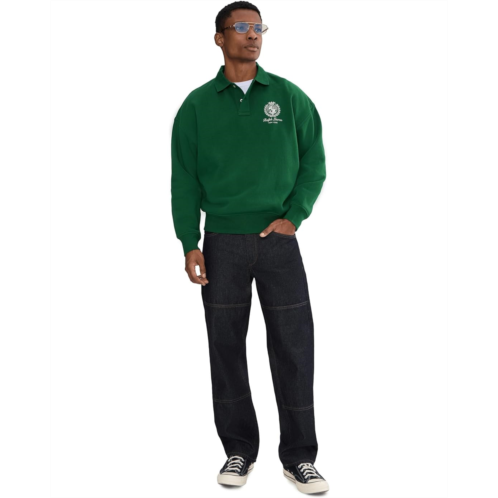 - Experience superior comfort and warmth wearing the Polo Ralph Lauren Relaxed Fit Fleece Graphic Sweatshirt. Made from fleece, it is styled with long sleeves, a collared neckline, a two-button front placket, and a straight hem. The ribbed cuffs and hem ensure a snug fit.