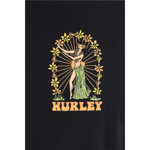 - The Hurley Island Time Short Sleeve T-shirt is a casual tee featuring side seam construction for added durability. Made from cotton, it is designed with short sleeves, a crew neckline, and a straight hem. The front of the shirt has a soft hand screen-print at the top of the left chest, while the back has a custom back neck artwork.