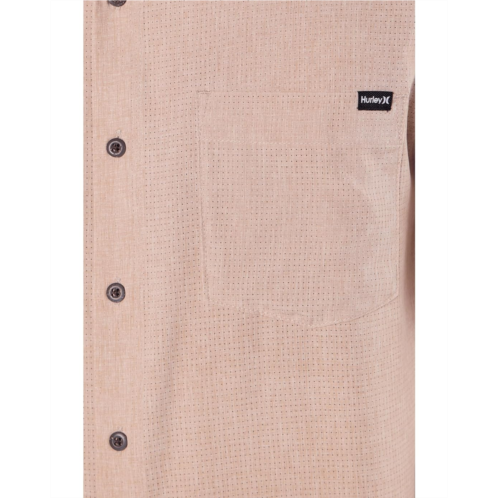 - Exude a smart and casual look wearing the Hurley Phantom Flow Short Sleeve Shirt. The point collared shirt comes crafted with phantom 4-way stretch perforated fabric with DWR coating that provides mobility, breathability, and quick drying comfort. It features a full button-front closure with recycled coconut buttons, a patch pocket at the left chest, short sleeves, and a straight hem with side vents.