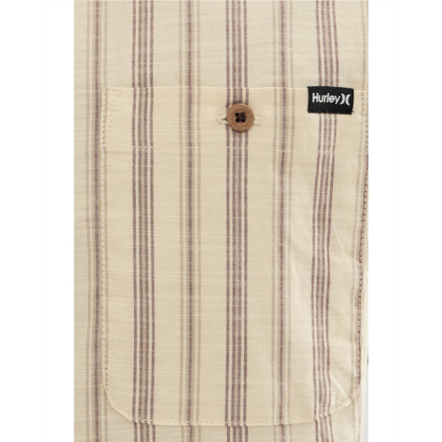 - The Hurley Lido Stripe Short Sleeve Shirt offers breathable comfort with a touch of stretch. Designed with an allover stripe print, it features a point collar, short sleeves, and a scalloped hem for a clean finish. Functional details include a buttoned front closure, pleats at the back yoke for ease of movement, and recycled coconut buttons that highlight Hurley's eco-minded approach. A signature woven label completes the look, making this shirt a versatile choice for casual outings or elevated everyday wear.