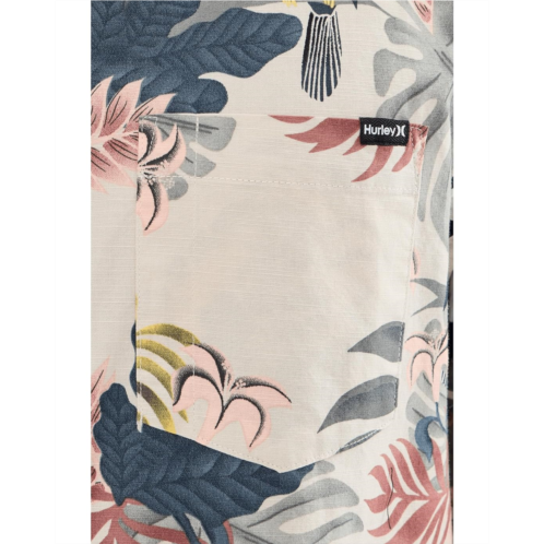 - The Hurley Lido Stretch Short Sleeve is your go-to for laid-back days that still call for sharp style. Designed with a classic point collar and clean button-up closure, this short-sleeve shirt blends timeless tailoring with modern attitude. The all-over print adds a bold, beach-ready edge, while the scalloped hem keeps the silhouette relaxed and easy to wear untucked. Thoughtful details elevate the look, recycled coconut buttons bring a sustainable touch, and the signature One and Only woven label adds authentic Hurley DNA. A left chest patch pocket with a built-in sunglasses slot keeps essentials close, whether you're chasing waves or city sunsets.