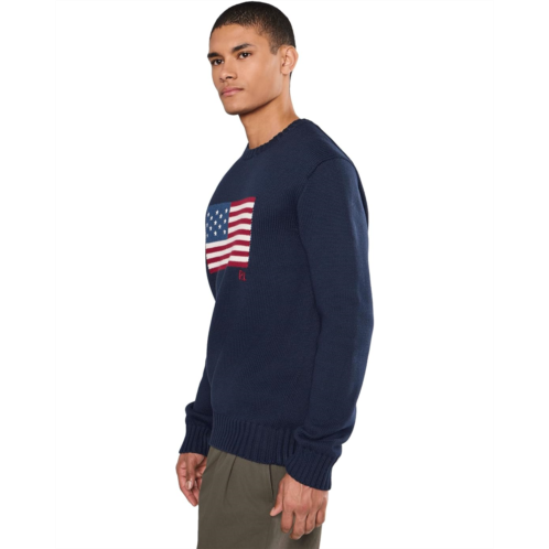 - The Polo Ralph Lauren The Iconic Flag Sweater honors the spirit of early America. Featuring a historical American flag knit on the front, this pullover sweater is made from cotton that offers superior comfort and breathability. It is designed with long sleeves, ribbed cuffs, a ribbed crew neckline, and a ribbed straight hem.