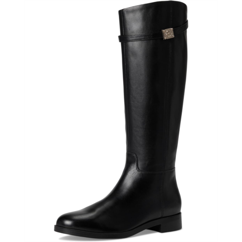 The GUESS Zoro riding boot is a beautiful silhouette with easy strap and logo details. The smooth leather upper offers a luxurious hand to your classic go to boot.