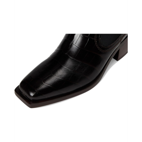 The Loeffler Randall Nat Midheel Western Ankle Boot brings a luxe twist to a timeless silhouette, making every step feel powerful, polished, and effortlessly on-trend. Crafted with a rich leather upper, lining, insole, and outsole, this ankle-high beauty showcases an ebony crocodile-embossed finish that adds instant texture and elevated edge. The modern square toe and sleek block heel create a refined yet relaxed profile, perfect for styling with denim, dresses, or anything that deserves a little statement energy. Designed with stretch gore panels for a flexible fit and a padded footbed for all-day comfort, this pull-on boot blends convenience with undeniable sophistication.