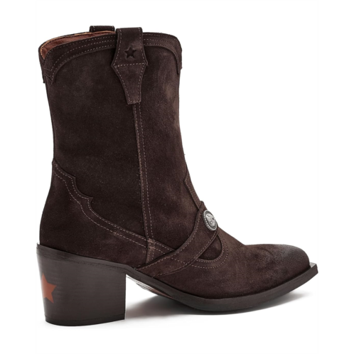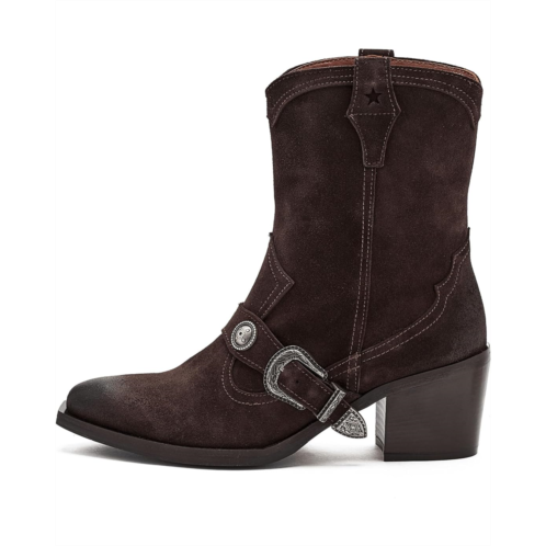 A vintage soul with a modern bite, Free People Lady Lonestar Western Boots. Crafted with a rich suede upper, these boots bring soft texture and elevated style to every outfit, from flowy dresses to lived-in denim. The smooth leather lining, insole, and outsole offer premium comfort and durability, making them perfect for all-day wear with a luxe feel underfoot. Designed with an easy pull-on silhouette, they slip on seamlessly while keeping that timeless Western profile intact. A statement buckle detail adds just the right touch of attitude, giving these boots a standout finish that feels both vintage-inspired and fashion-forward.