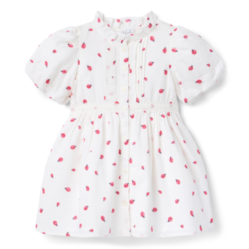 - Spotted: our new favorite dress for fashion-forward moments. Featuring allover ladybugs, pintucks and puff sleeves, plus a ruffle neck and crochet trim.