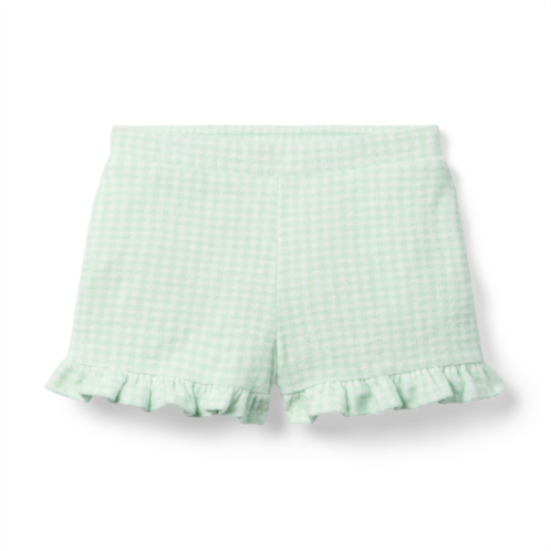 - Our soft loop terry short is perfect for getaways near and far. Designed with an allover gingham print and ruffle cuffs.