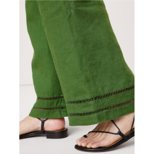 - Things we love about these linen pants: the kick-flare silhouette, the premium 100% linen fabric, the lace trim at the cuff, and the hidden elastic at the back waist for a custom fit. Make it a set and wear with the matching linen vest.